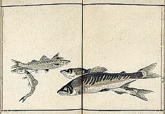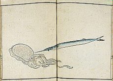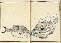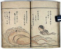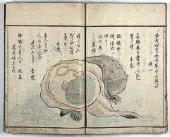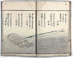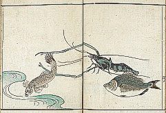 title changed to: Gyokai ryakuga-shiki ('Fishes and Shells in the Abbreviated Style of Drawing') dated: 1813, but printed in the 1830s or later, all poems removed >> NO larger pictures available! << |