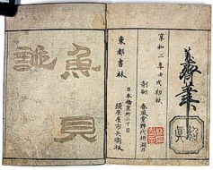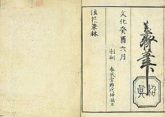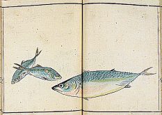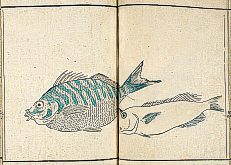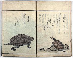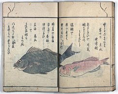 title changed to: Gyokai fu ('The Fish and Shell Album') slightly later, still w/h poems, but poets' names removed; dated: 1802; lost title slip replaced later, carrying a false title: that of the 1813 edition as in the sample at right. |