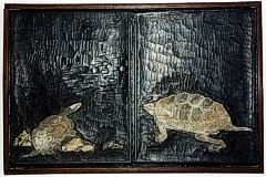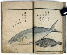 Side-by-side presentation of three editions of Masayoshi's renowned 'Fish and Shell' book, - plus samples of the original printing blocks |