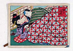 |   | Utagawa school a koban-sized print with movable elements ! unusual and rare ! c. 1840s |   | KUNISADA, Utagawa (attr. to) Wakashu and courtesan - surimono-quality printing - - SOLD - |