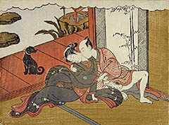 |  | KORYUSAI, Isoda Couple by the verandah with dog chuban size 1770s |   | EISEN, Keisai 1790 - 1848 Two prints from the illustrated shunga book: "Ehon Fuji no yuki" 1824 |
